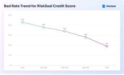 RiskSeal's credit and trust scores show a clear correlation with repayment behavior: